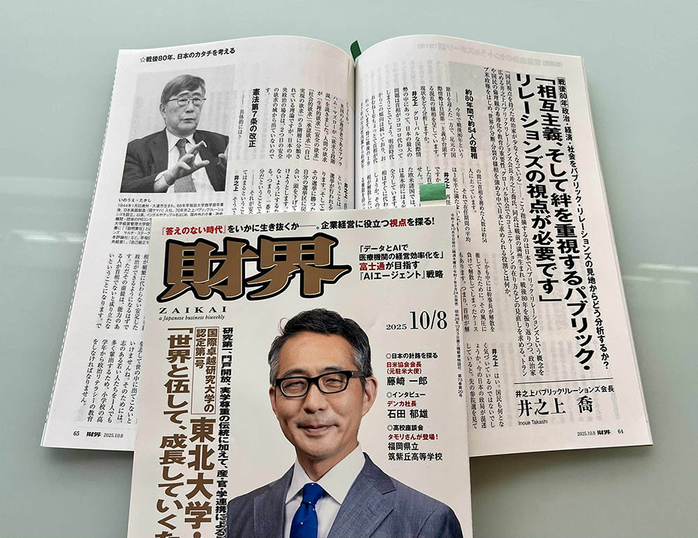 HOME > ニュース > ビジネス雑誌「財界」2025年10月8日号にて、当研究所所長の井之上喬のインタビューが掲載されました。